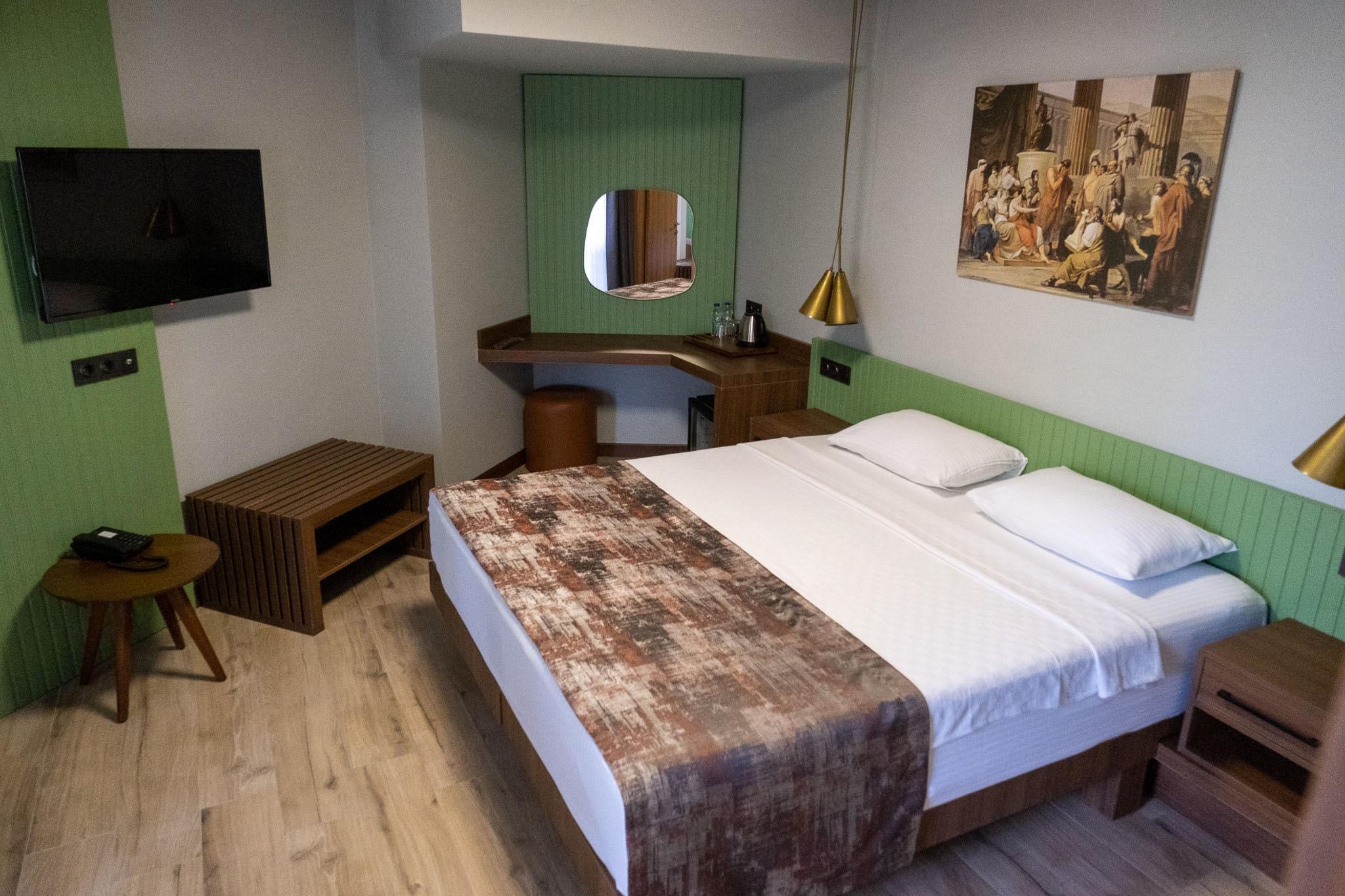 45 m² genişliğinde 1+1 Balkonlu Seaview Deluxe Aile odalarımız, lüks ve konforu modern tasarımla birleştirerek ailece unutulmaz bir tatil deneyimi sunuyor. Ferah yaşam alanı, zarif dekorasyonu ve özenle düşünülmüş detaylarıyla hem yetişkinler hem de çocuklar için konforlu bir konaklama sağlıyor. Deniz manzaralı geniş balkonunuzda günün yorgunluğunu atarken, Ege’nin huzur veren atmosferinin tadını çıkarabilirsiniz.